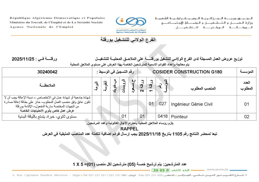 تعلن مؤسسة كوسيدار عن فتح توظيف في مختلف التخصصات التالية