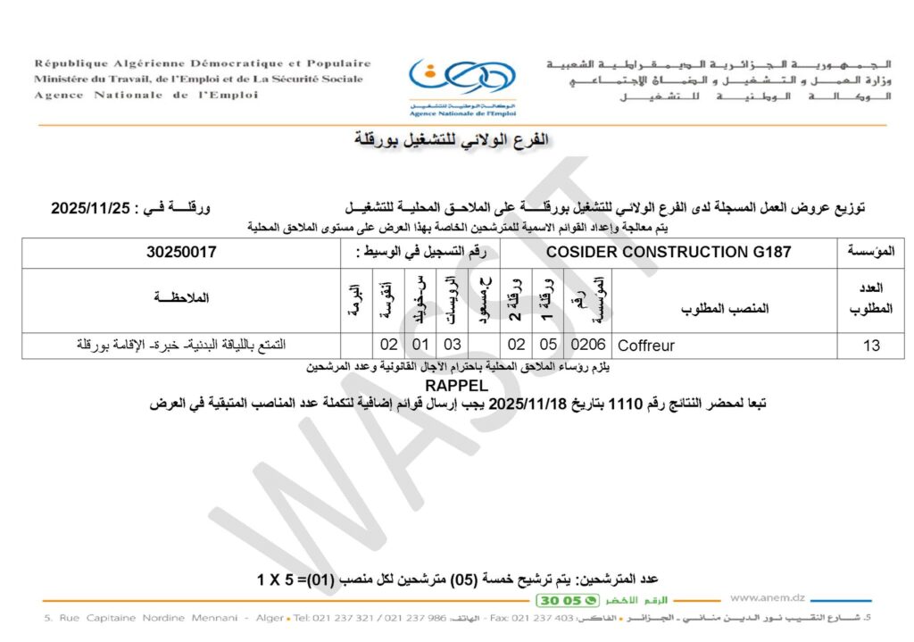 تعلن مؤسسة كوسيدار عن فتح توظيف في مختلف التخصصات التالية