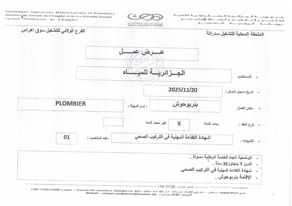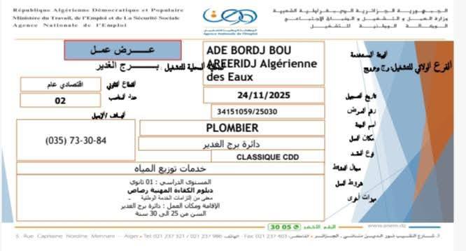 الجزائرية للمياه – ADE BORDJ BOU ARERIDJ – فرع برج الغدير.