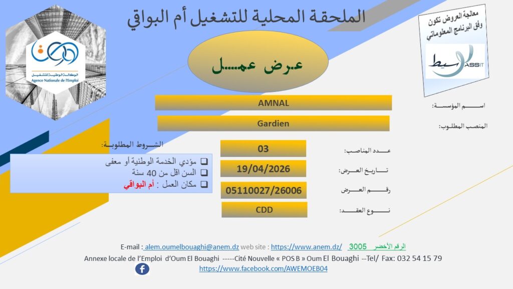 • مكان العمل: أم البواقي.