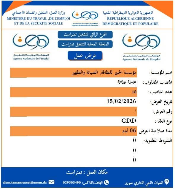 مدة صلاحية العرض: 06 أيام