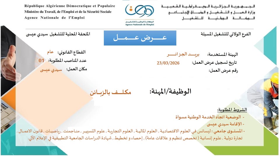 تاريخ تسجيل عرض العمل: 23/03/2026