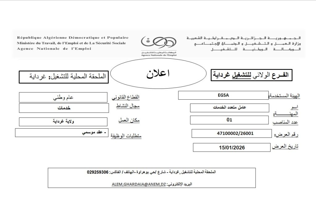 مؤسسة تسيير مطارات الجزائر تعلن عن توظيف عامل متعدد الخدمات