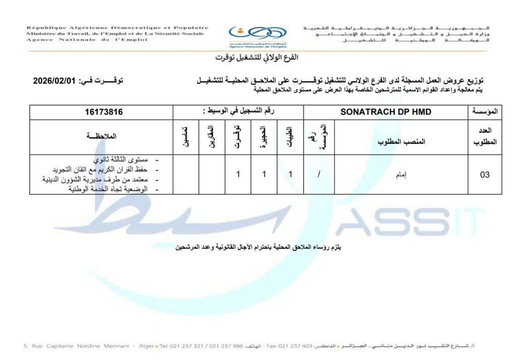 يتم توزيع عرض العمل هذا على الملاحق المحلية للتشغيل، حيث تتولى هذه الملاحق معالجة وإعداد القوائم الاسمية للمترشحين.