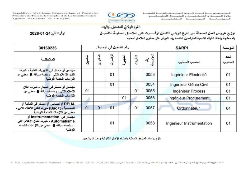 تعلن صاربي بولاية توقرت عن فتح مناصب عمل في التخصصات التالية