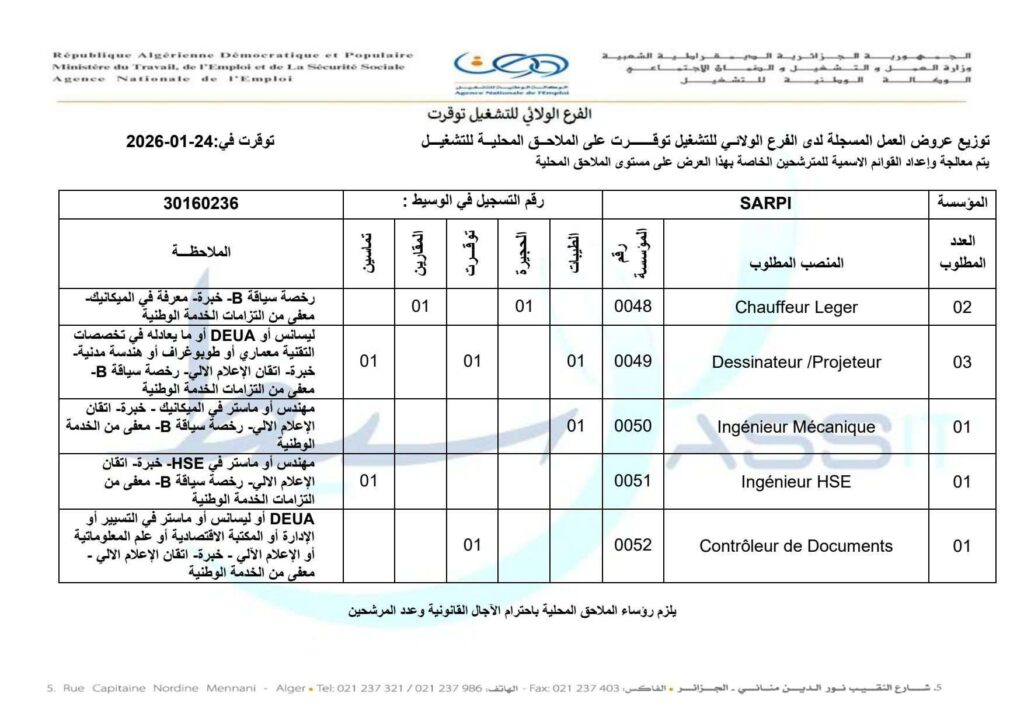 تعلن صاربي بولاية توقرت عن فتح مناصب عمل في التخصصات التالية