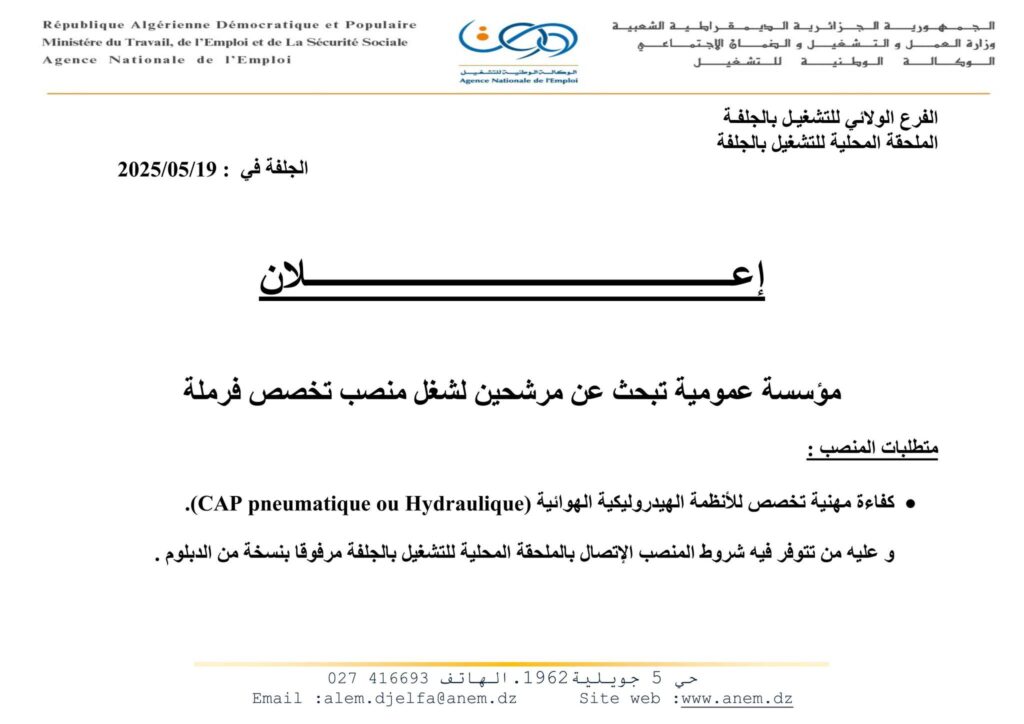 مؤسسة عمومية تبحث عن مرشحين لشغل مناصب مختلفة