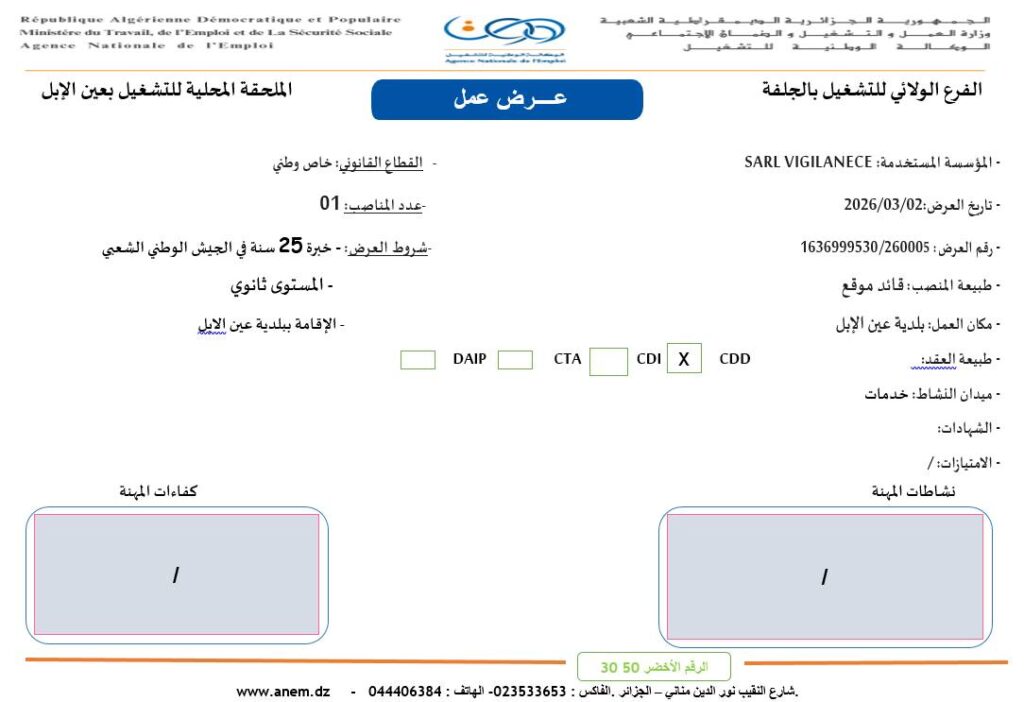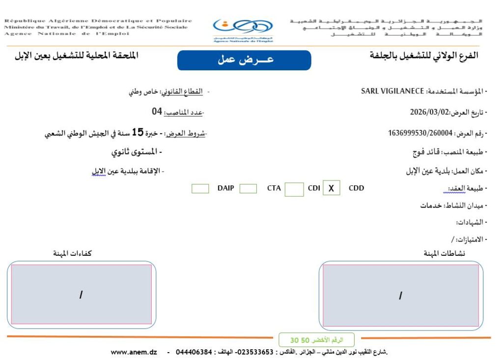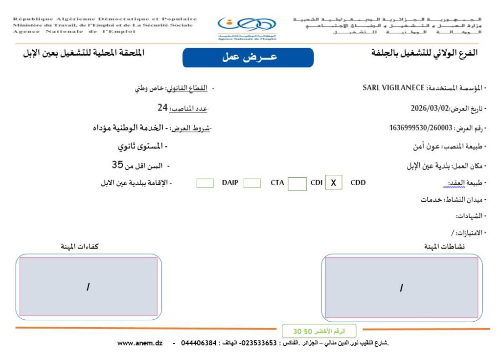 • المؤسسة المستخدمة: SARL VIGILANCE