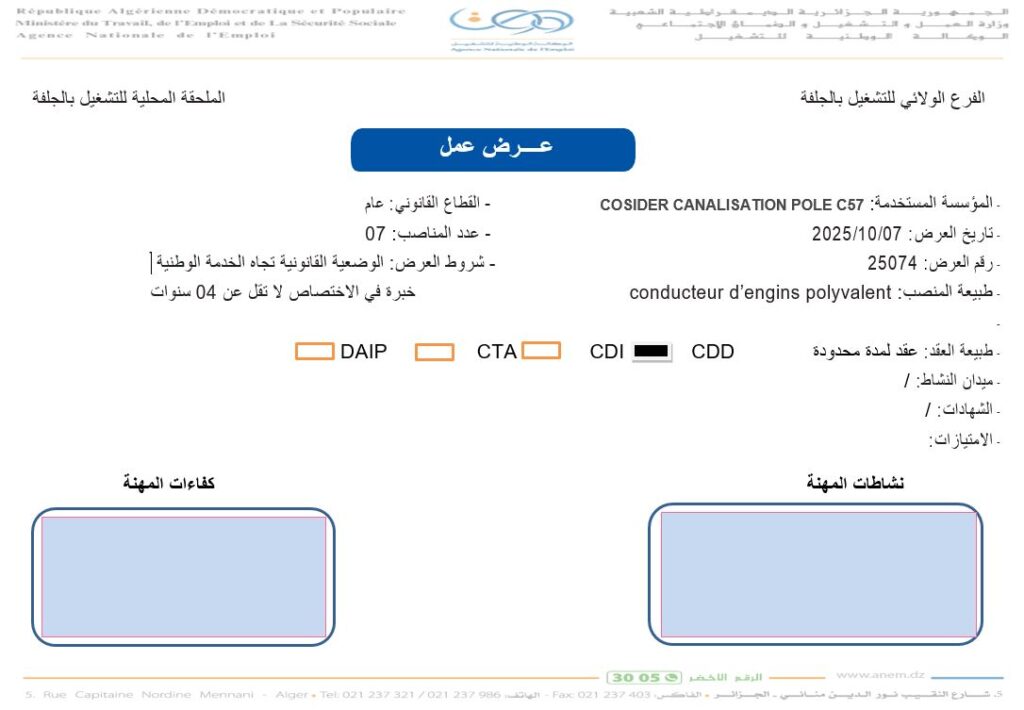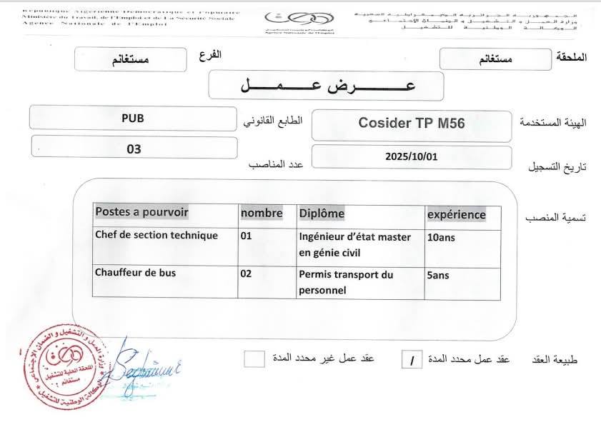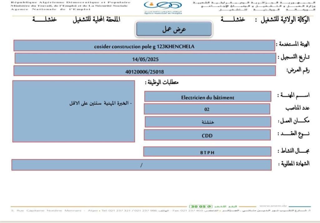 2. عرض عمل من COSIDER Construction (ملحقة خنشلة)