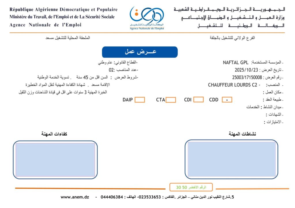 تعلن نفطال الجلفة عن فتح توظيف في الرتب التالية