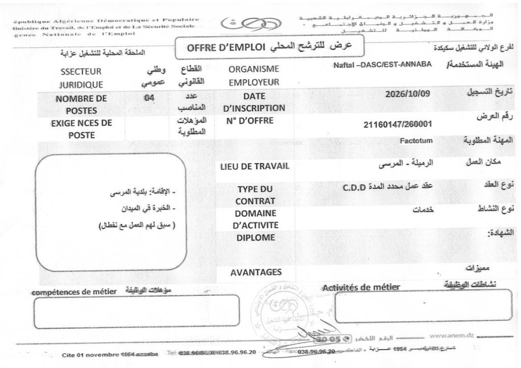 لقد قمت باستخراج المعلومات الأساسية والبيانات الواردة في الصور المرفقة، وهي عبارة عن إعلانات توظيف لشركة Naftal عبر الوكالة الوطنية للتشغيل (ANEM) في الجزائر.