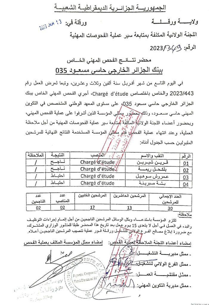 محضر نتائج خاص ببنك الجزائر الخارجي BEA.HMD