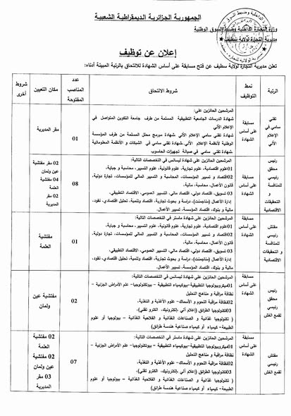 تعلن مديرية التجارة لولاية سطيف عن فتح مسابقة على أساس الشهادة للالتحاق بالرتب المبينة أدناه: