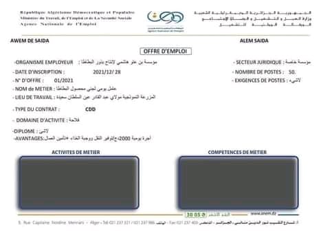 مزرعة بولاية سعيدة تبحث عن 50 عامل متوفر النقل والأكل وتأمين