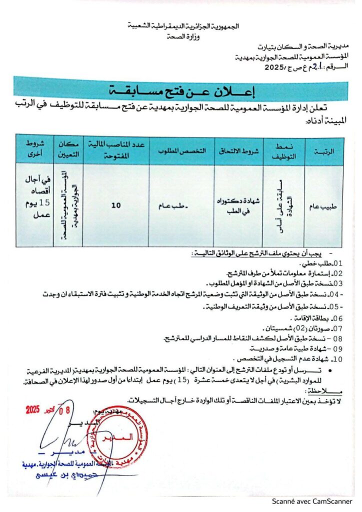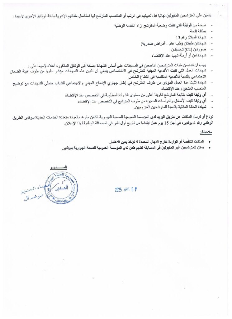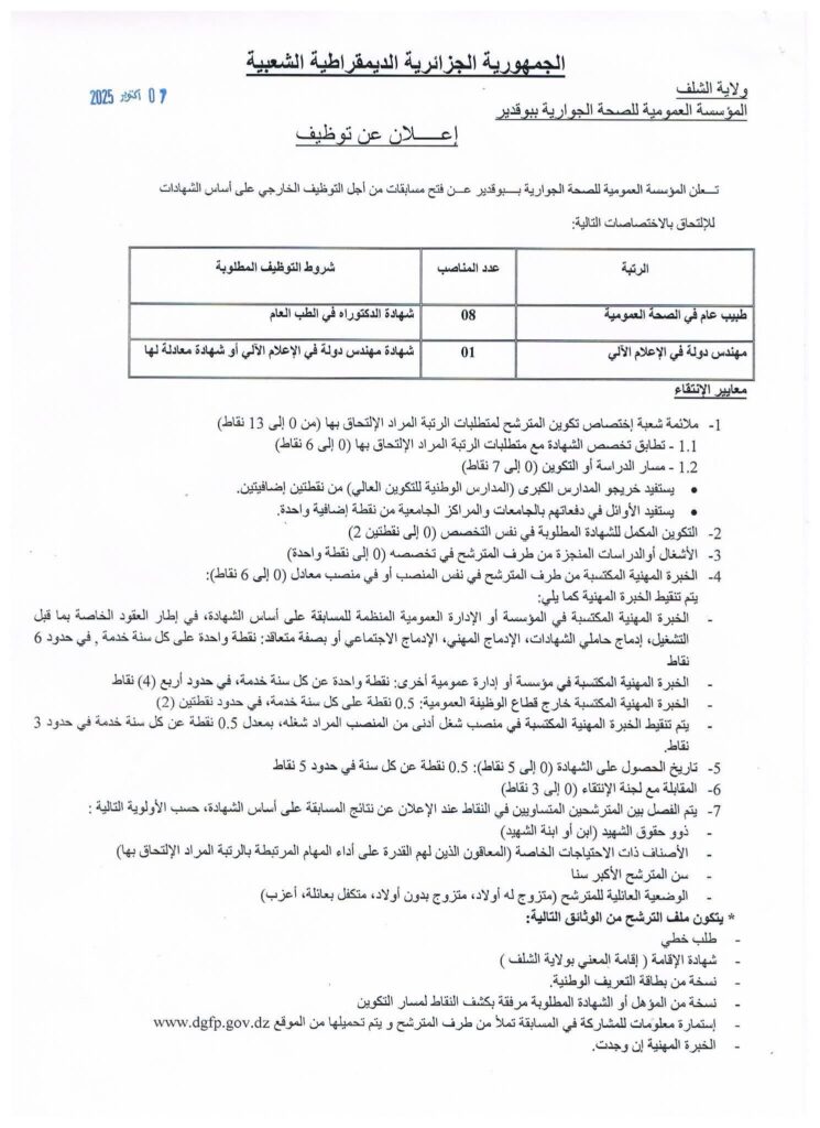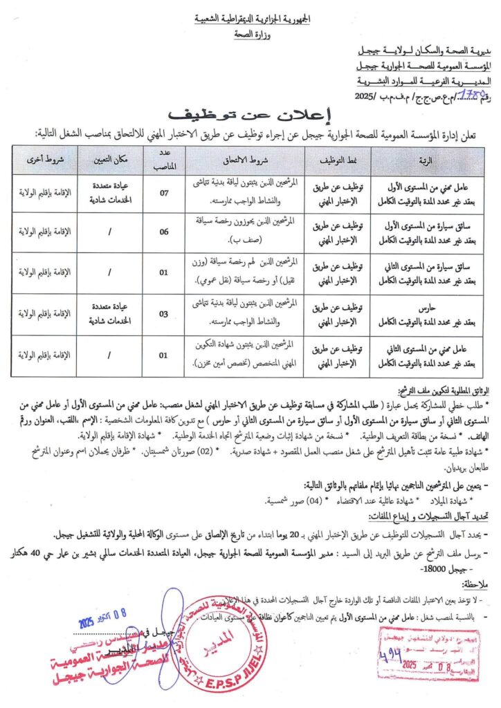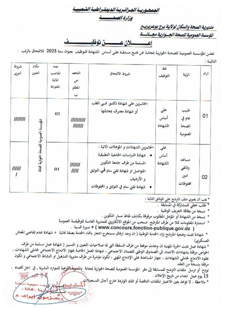 مسابقات توظيف بالمؤسسة العمومية للصحة الجوارية بولايات جيجل.تيارت.برج بوعريرج.الشلف