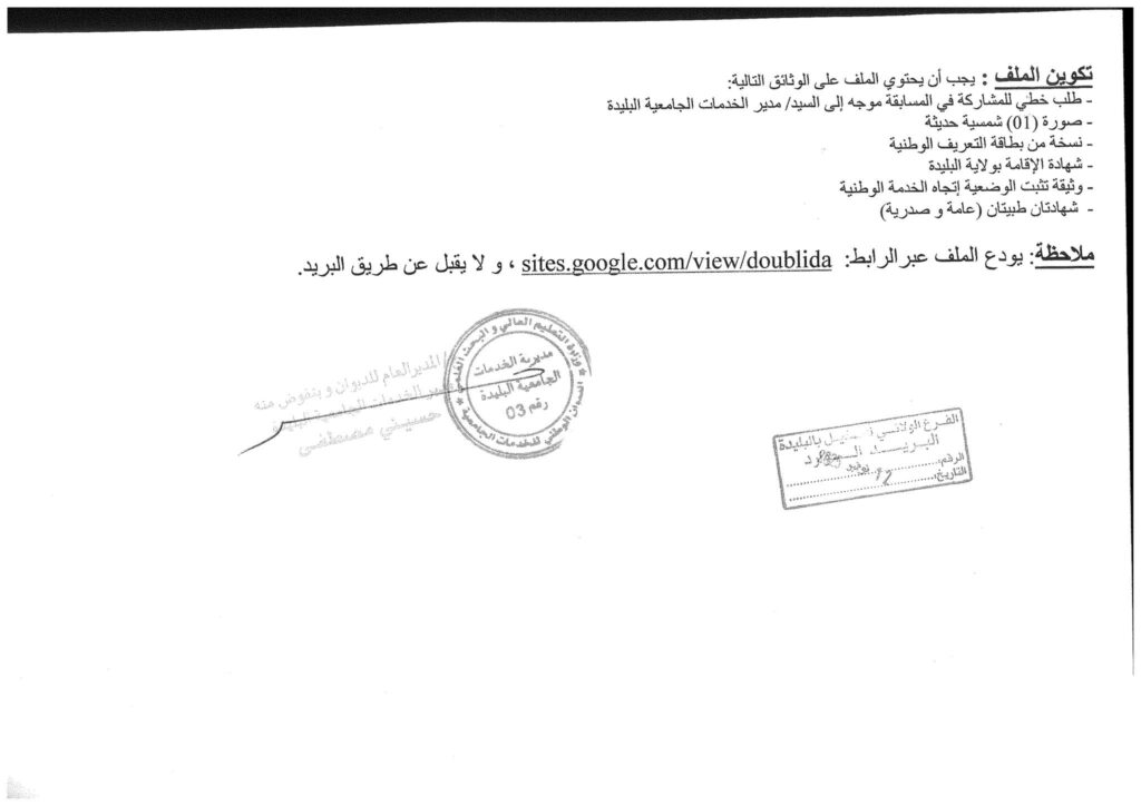 ملاحظة: يودع الملف عبر الرابط: sites.google.com/view/doublida ، ولا يقبل عن طريق البريد.
