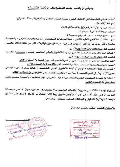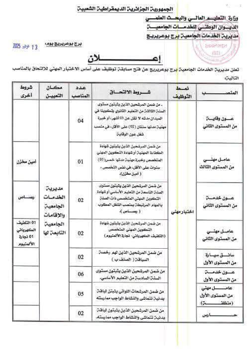 (إعلان توظيف مديرية الخدمات الجامعية ببرج بوعريريج)