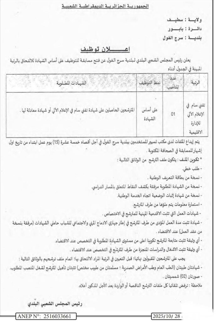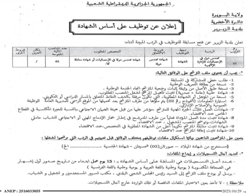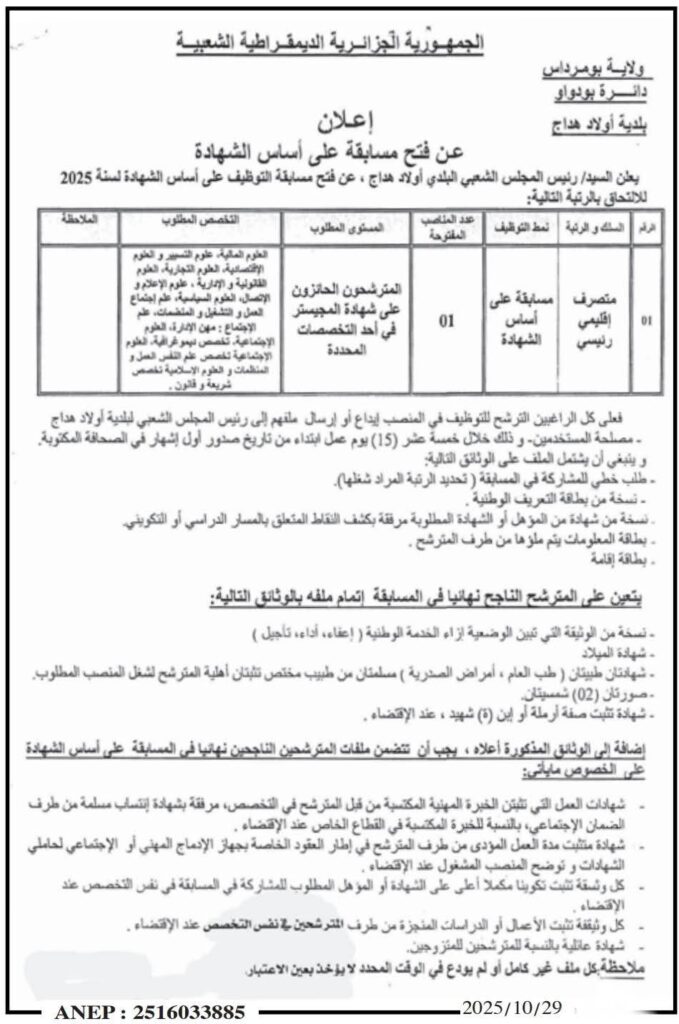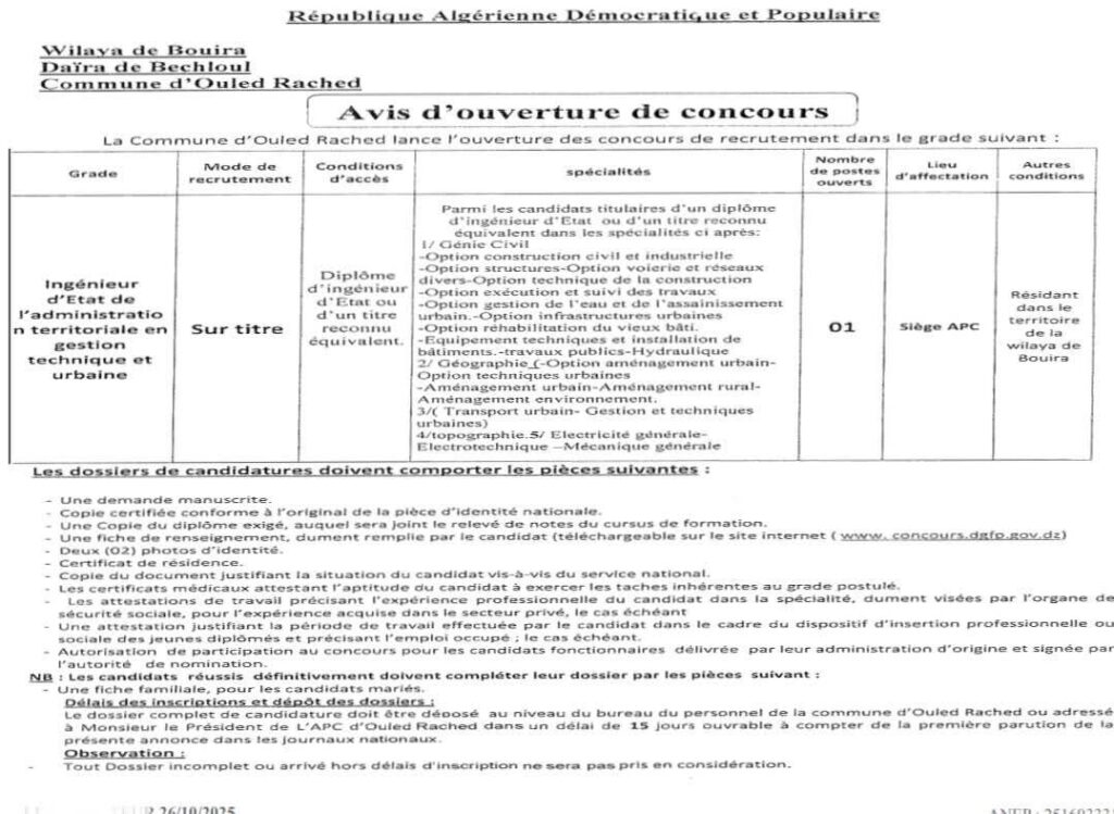 مسابقات توظيف بولايات التالية البويرة.بومرداس.سطيف.المدية.غليزان