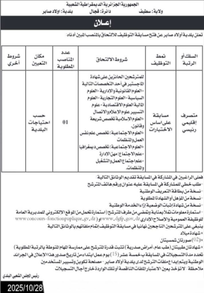 الوظيف العموميالرئيسيةولاية البويرةولاية المديةولاية بومرداسولاية سطيفولاية غليزان
