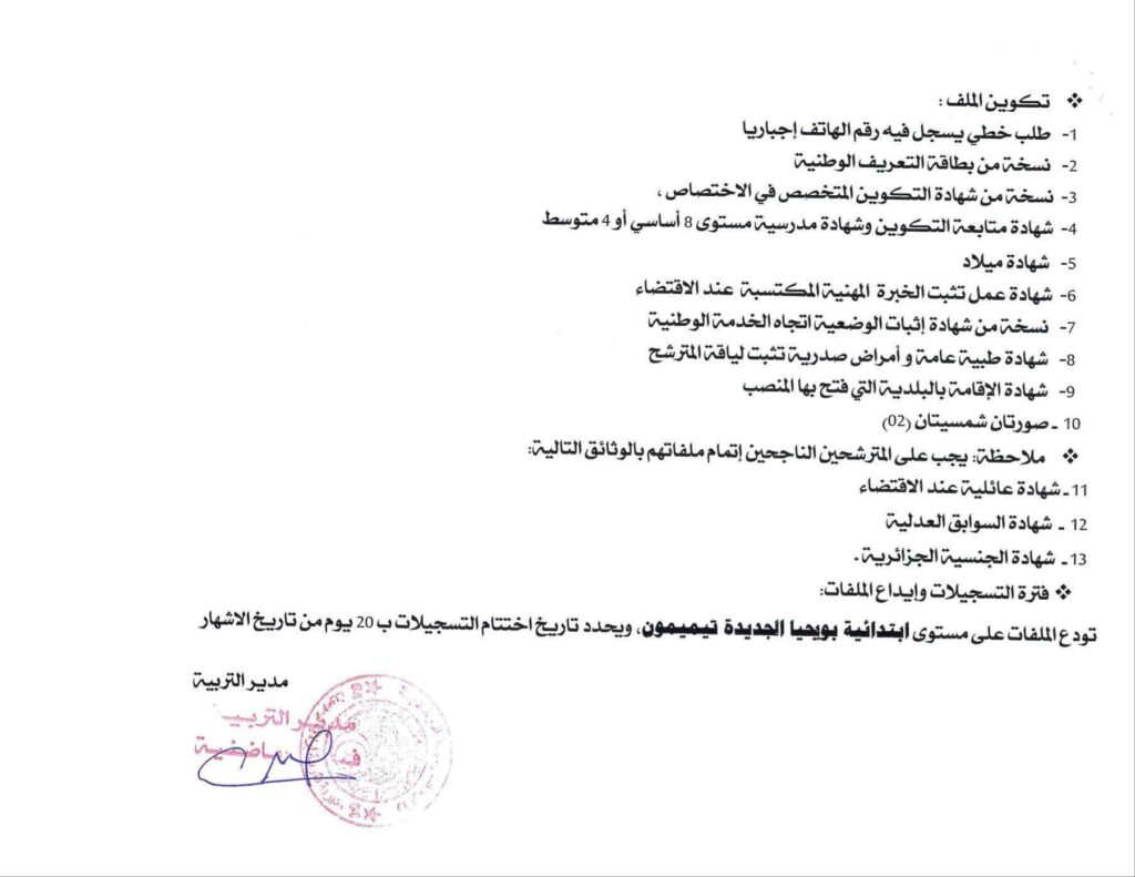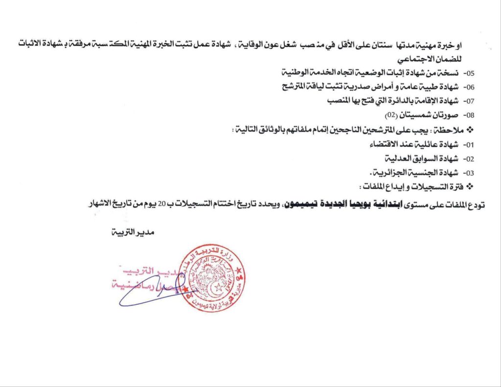 القطاع التربيةالرئيسيةالوظيف العموميولاية أم البواقيولاية تيبازةولاية تيميمون