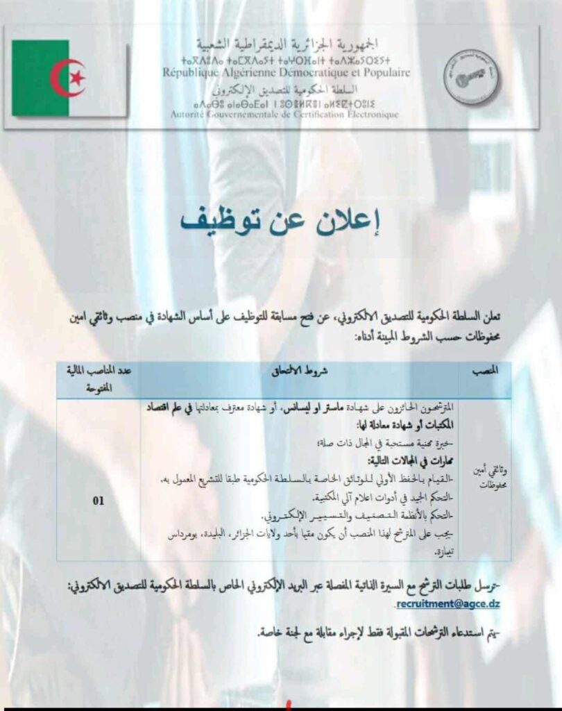 مسابقة توظيف بالسلطة الحكومية للتصديق الإلكتروني
