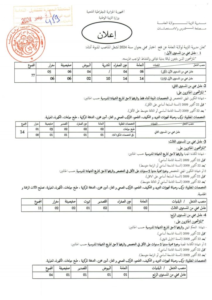 تعلن مديرية التربية لولاية النعامة عن فتح مسابقة للتوظيف في الرتب التالية: