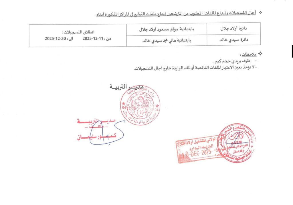 مسابقة توظيف في مديريات التربية لولاية بني عباس واولاد جلال