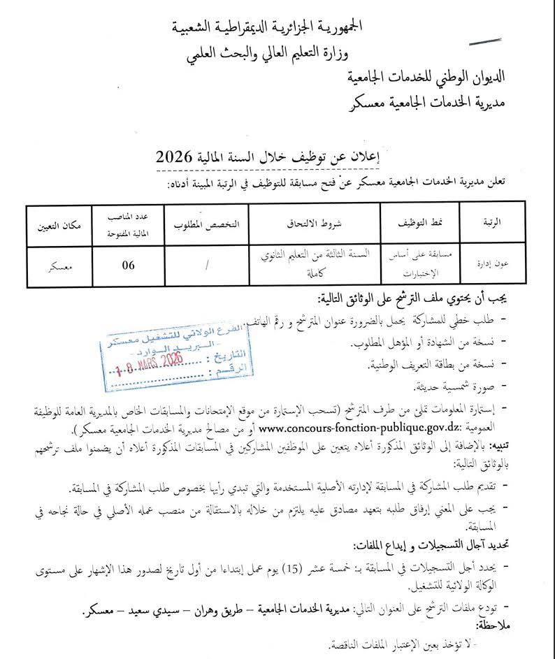 مسابقة توظيف مديرية الخدمات الجامعية معسكر