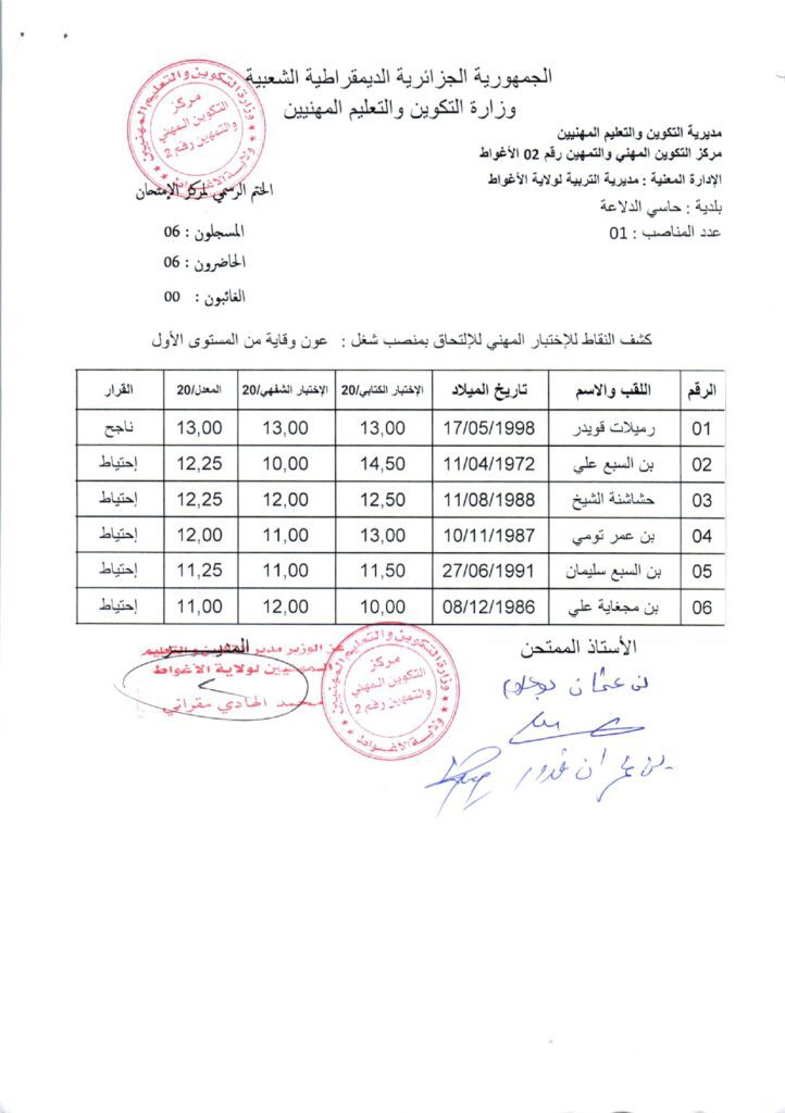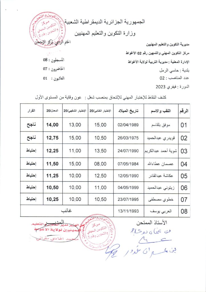 نتائج مسابقة لمديرية التربية لولاية الأغواط
