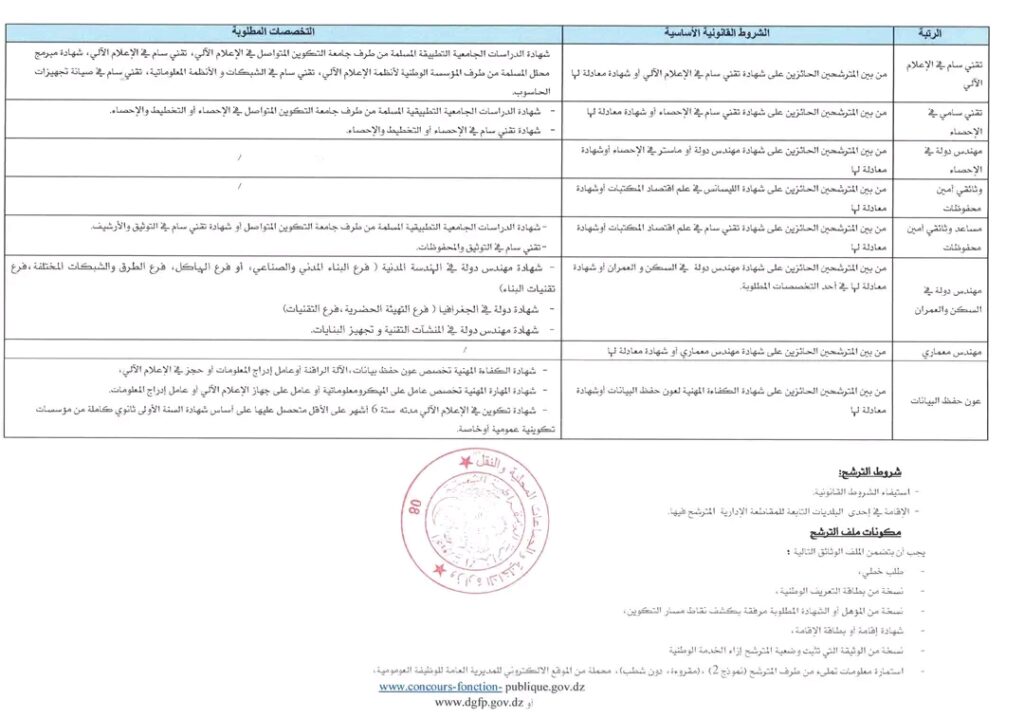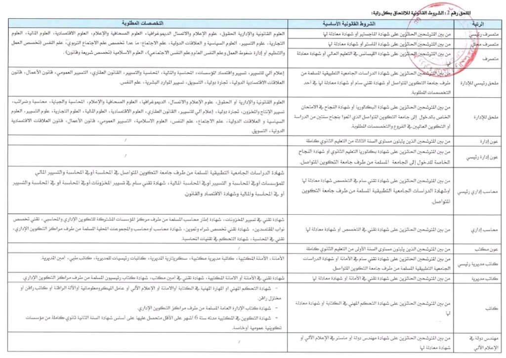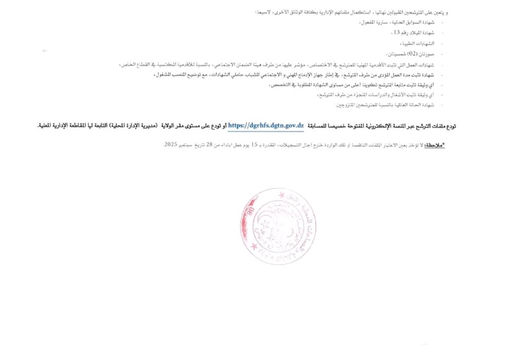 يفتح الترشح في هذه المسابقة للمترشحين المستوفين الشروط القانونية المحددة في الملحق رقم 02 و المقيمين في البلديات التابعة للمقاطعات الإدارية المعنية.