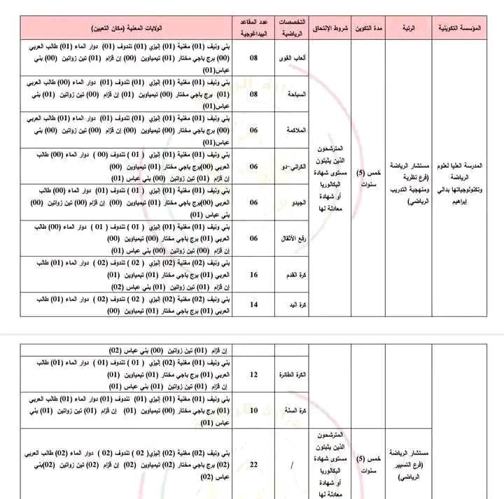 في إطار السياسة العامة للدولة الهادفة إلى دفع عجلة التنمية في المناطق الحدودية والجنوبية، وضمان التأطير داخل مختلف الهياكل والمنشآت الرياضية بهدف تعميم ممارسة الأنشطة البدنية والرياضية وتطويرها، يُعلن السيد وزير الرياضة عن إطلاق عملية توظيف للالتحاق بالتكوين المتخصص لفائدة شباب هذه المناطق.