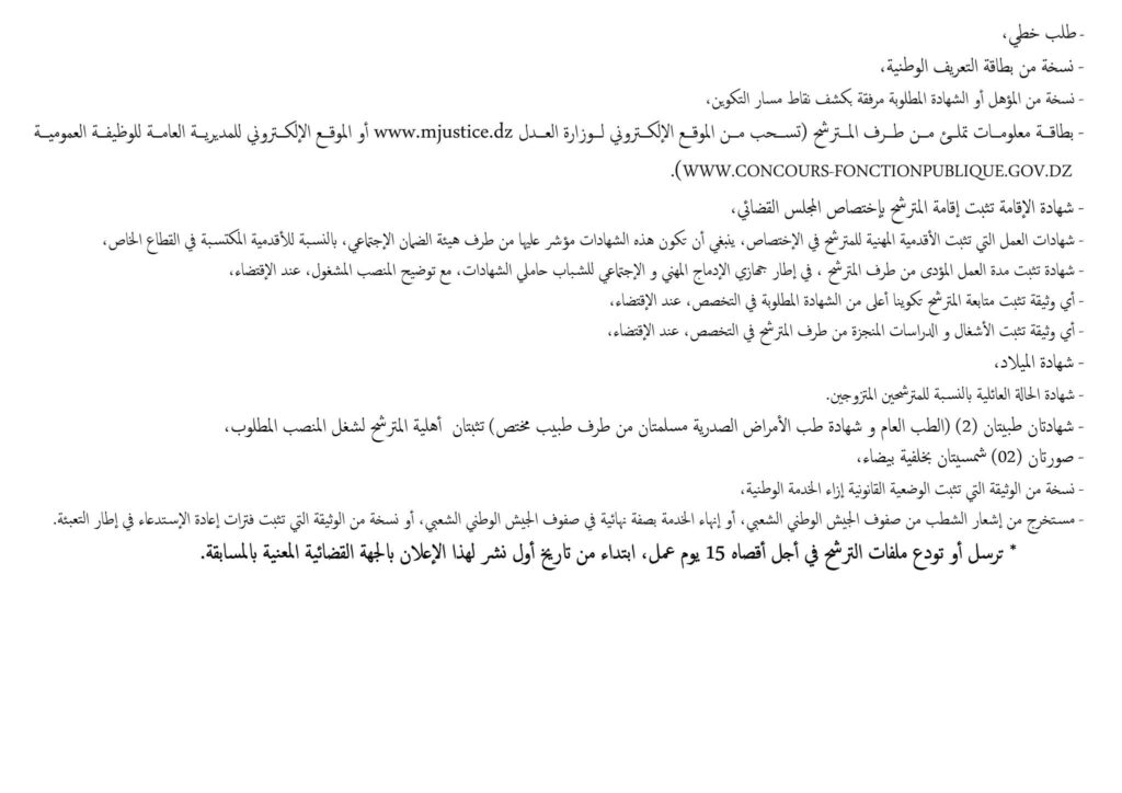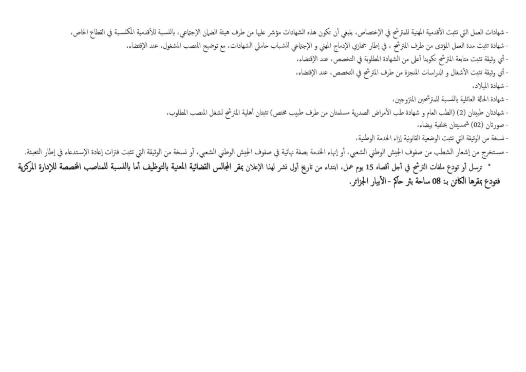 - تُودع الملفات على مستوى المجالس القضائية المعنية بالتوظيف.