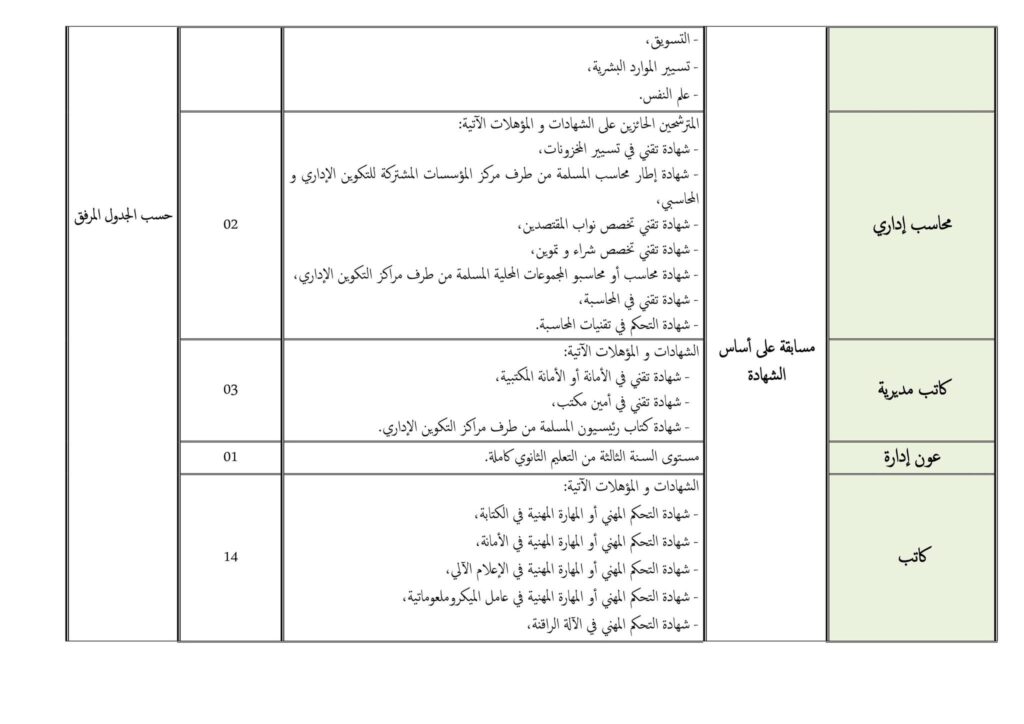- معاون أمين ضبط/عون ضبط: شهادة البكالوريا أو شهادة معادلة لها.