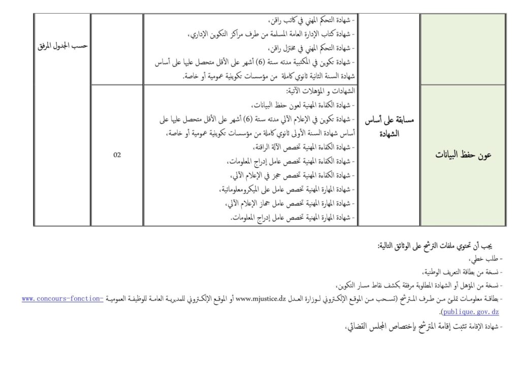 - بطاقة معلومات تُحمَّل من الموقع الإلكتروني لوزارة العدل أو موقع المديرية العامة للوظيفة العمومية.