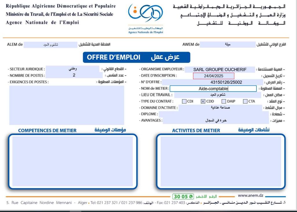 تعلن وكالة التشغيل ميلة عن فتح مناصب عمل في مختلف التخصصات