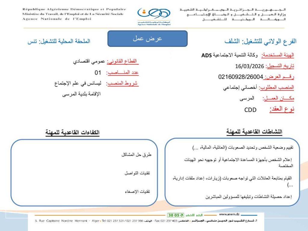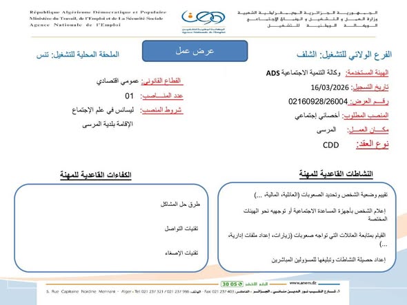 • شروط المنصب: ليسانس في علم الاجتماع.