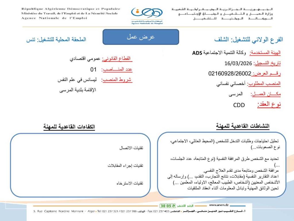 المنصب المطلوب: أخصائي نفساني.