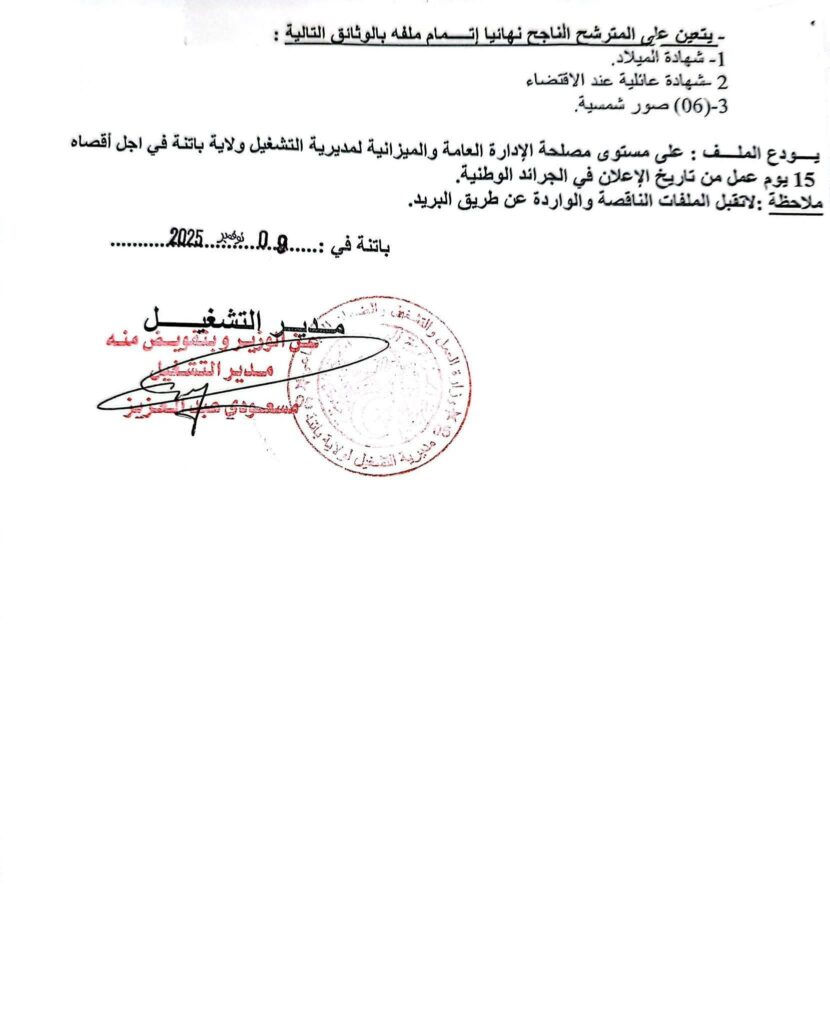 اعلان مسابقة توظيف في مديرية التشغيل لولاية باتنة
