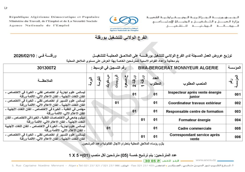 • المؤسسة:BMA-BERGERAT MONNYEUR ALGERIE