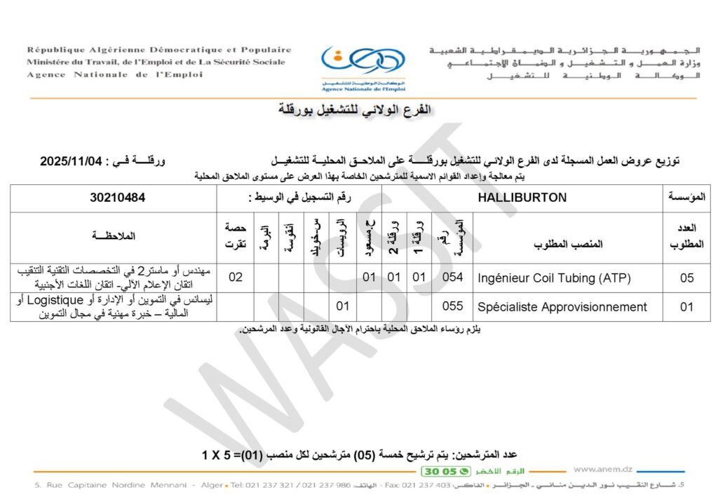 يتم معالجة وإعداد القوائم الاسمية للمترشحين الخاصة بهذا العرض على مستوى الملاحق المحلية للتشغيل.