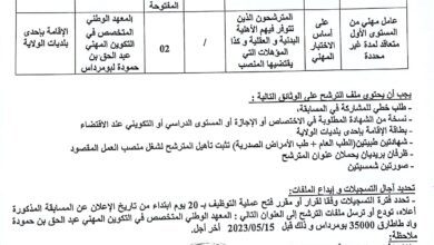 اعلان توظيف بالمعهد الوطني المتخصص في التكوين المهني عبد الحق بن حمودة بومرداس