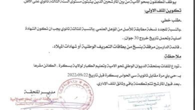جميع المسابقات واعلانات توظيف لشهر سبتمبر 2022 جميع المسابقات واعلانات توظيف لشهر سبتمبر 2022 سلام عليكم معكم فريق العمل…
