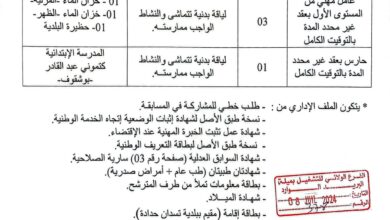 اعلان توظيف ببلدية تسدان حدادة ولاية ميلة يعلن رئيس المجلس الشعبي البلدي لبلدية تسدان حدادة عن فتح مسابقتين للتوظيف…