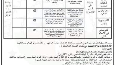 اعلان توظيف بجامعة الشهيد حمه لخضر بالوادي (اداريين)