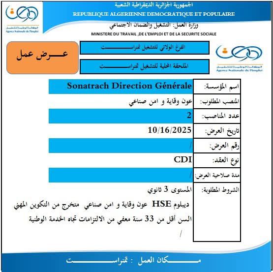 اعلان توظيف أعوان وقاية و امن صناعي في سوناطراك